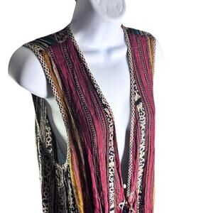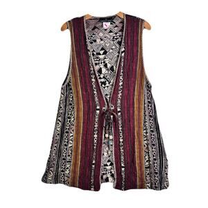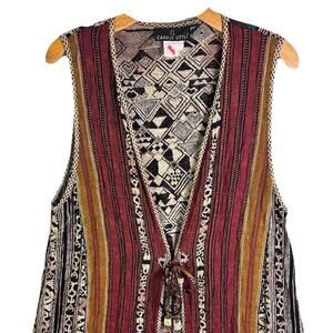*CAROLE LITTLE Vintage Sleeveless Vest With Geometric & Striped Pattern; tie in front