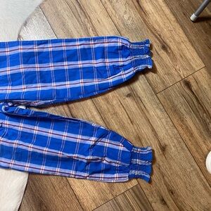 Plaid Pattern: It features a blue, red, and white plaid design, offering a classic and cheerful look.