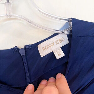 Ronny Kobo Shanaya Blue Zebra Animal Print Long Sleeve Draped Mini Dress M NWT