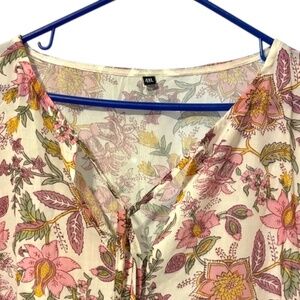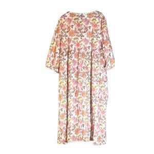 Charming floral dress with pink and white hues. Perfect for a casual outing.