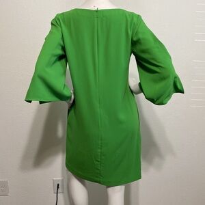 Trina Turk Green Larsen 3/4 Sleeves Crew Neck Keyhole Crepe Shift Dress Size 6