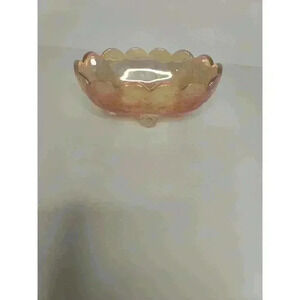 Jeannette Peach Glass Candy Dish 4-Footed Oval Iridescent VTG