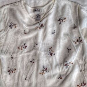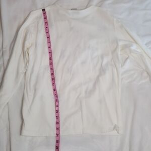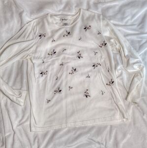 Long-sleeved top in creme by Van Heusen. Neutral colored flowers are embroidered across the front of top. GUC.