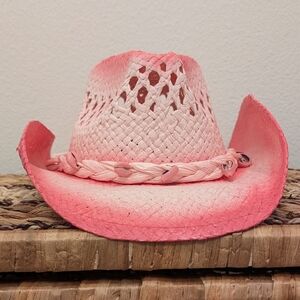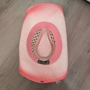 Vintage Coastal Headwear Pink Tea Stain Straw COWBOY HAT WESTERN cowgirl
