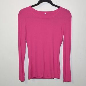 Pink Ribbed Long-Sleeve Crewneck Stretchy Rayon Shirt No Brand Women's Size S