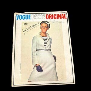 This vintage sewing pattern by Yves Saint Laurent allows you to create a timeless dress with a classic silhouette. Complete with original tags, it’s perfect for collectors or sewing enthusiasts.