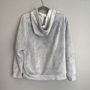 Stay warm and stylish with this cozy gray hooded sweater. Perfect for any casual outing.