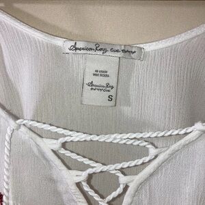 American Rag White Blouse with Red Floral Embroidery