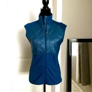 Women’s Largo Ellipse Vest, a dreamy blend of merino wool warmth and quilted sophistication. In a serene shade of blue, this size medium vest feels like wrapping yourself in a cloud that’s ready for anything — from mountaintop mornings to cozy coffee runs. The quilted GT design adds a hint of sporty polish, while the merino wool works its natural magic to keep you perfectly comfortable, come sun or snowflake. Lightweight yet luxuriously snug, it layers beautifully over tees or sweaters, bringing a whisper of wanderlust and a whole lot of effortless cool to every outfit. Has a couple of tiny holes on the front wool. Great mid layer vest for outdoor use