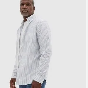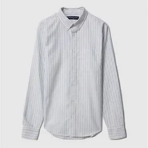 Casual and stylish button-down shirt. Features blue stripes. Ideal for everyday wear.