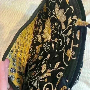 Vera Bradley hand bag black with yellow flowers. Measures 15x12inches