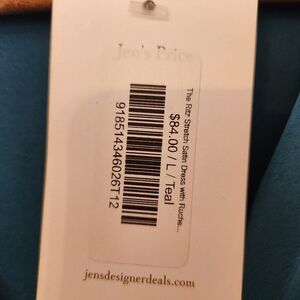 The perfect length dress does exist. Introducing the Stretch Satin Dress by Reneec., a chic bodycon piece in stunning teal. Featuring long sleeves and a V-neckline, this dress is crafted from a blend of 97% Polyester and 3% Spandex for a comfortable fit. The ruched asymmetrical hem adds sophisticated allure and is made in the USA. Care for it easily with machine wash instructions.