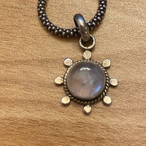 Blue moonstone sun pendant on a 925 sterling silver popcorn chain