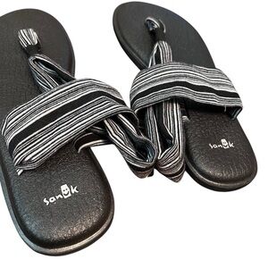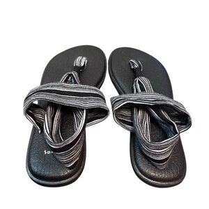 Sanuk Yoga Sling 2 Sandals Women’s Size 9 Black White Stripe Comfy Shoes