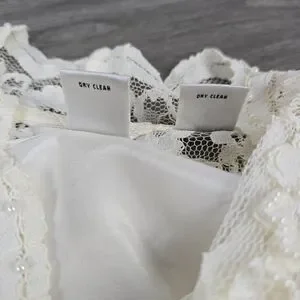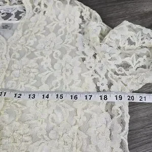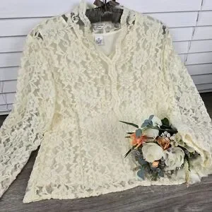 Laura Ashley laced Blouse with beaded detail. Attached camisole. The lace sleeves are unlined. Size 10P with measurements in the photos. In great pre-owned condition.