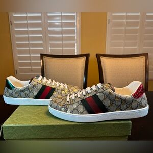 New Authentic Gucci Ace GG Supreme Logo Bees Sneaker Shoes Size UK 12 / US 12.5