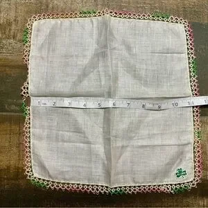 Vintage Linen Handkerchief w/ Pink & Green Lace Trim – 15”