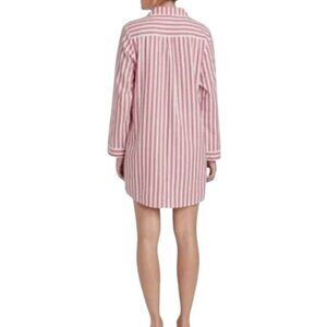 Red & White Striped Button-Down Nightshirt Stars Above Long Sleeves Flannel XL