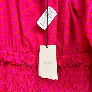 New with Tags Alexis Marilena Dress Size M Smocked Polka Dot Off-Shoulder Pink Orange Dots Mini