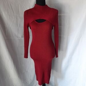 Almost Famous Bodycon Sweater Dress Sz Lg/Med Burgundy Wine Red Cutout Ribbed