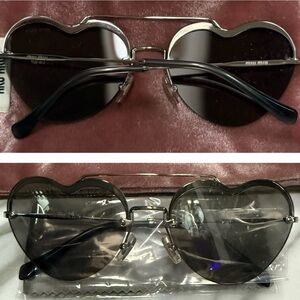 MIU MIU HEART SHAPE SILVER GRADIENT MIRRORED SUNGLASSES. THIS MIU MIU PAIR IS A PLAYFUL COUNTERPART TO PRADA ( CREATED IN 1992) AND THE HEART SHAPE GIVES A FUN EVER YOUNG FEELING ❣️