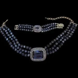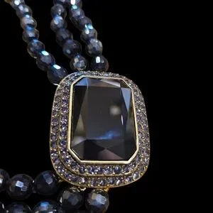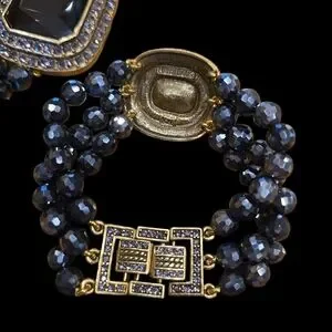 Tailored to Please stunning Heidi Daus black crystal beads with gold accents. Features a bold central pendant. Perfect for sophisticated style.