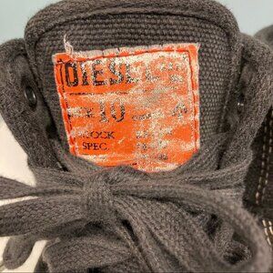 DIESEL Vintage Combat Boot Sneaker Canvass Top and Rubber sole sz 38. Y2K vibe. Distressed aesthetic but structurally sound. Broken in look. Statement piece for a retro grunge or steam punk vibe.