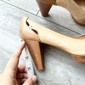 Blondo Tan Ivory Contrasting Colour Leather Peep Toe Cutout Platform Pumps