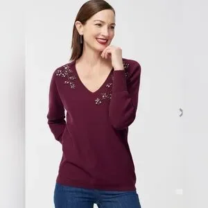 Chico’s Gem Neckline Pullover Sweater Size 4 US XXL V-Neck Color Deep Merlot