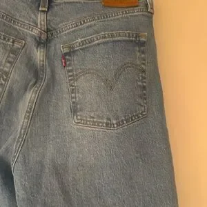 Elevate your style with these classic Levi’s blue women's jeans. Button fly. Perfect for any casual outing. Worn once. Approx 38 inches in length