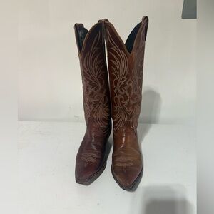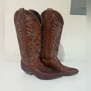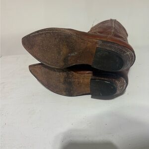 Elevate your look with these elegant brown western heeled boots. Perfect for adding a touch of sophistication to any outfit. Some wear to them and recently conditioned!