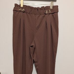 No Comment Plus NY-LA Women's Size 1X Brown Paperbag Pants Tapered Leg Pull On