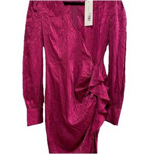 VERONICA BEARD Magenta Paisley Weiss V-Neck Ruffle Maxi Dress Sz 2 NWT MSRP$698