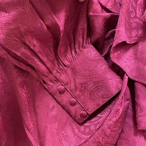 Magenta Silk Blend V-neck Maxi Dress with Ruffle at the Waist, Hidden Back Zipper, Front Side Split Hem