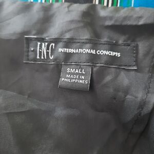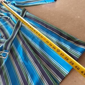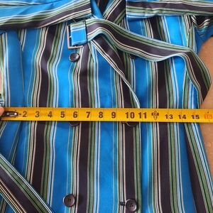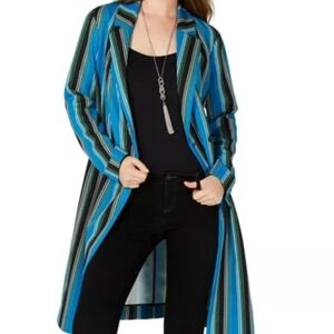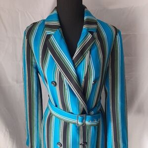I N C Striped Trench Coat Womens Sz Small Blue Black Belted Buttons