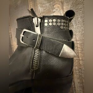 Chic black booties with buckle detail. Versatile and stylish for any outfit. Worn only a couple times. I’m a size 8 and with socks they are too tight.