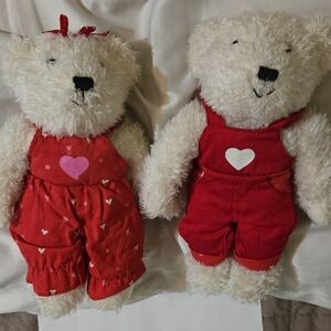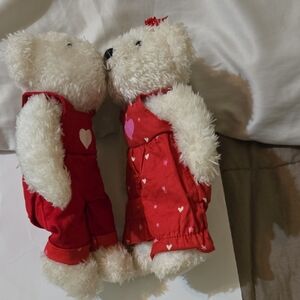 Charming Hallmark 2004 plush kissing bears in red outfits with white heart accents. Ideal for gifting or Holliday accent.