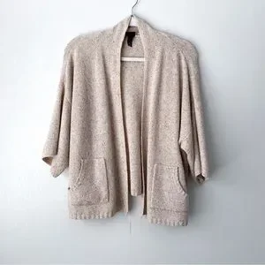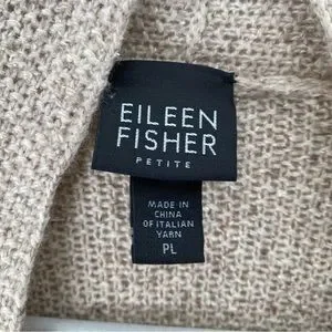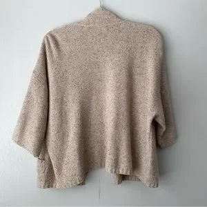 Eileen Fisher Wool Silk Knit Open Front Cardigan Sweater Large Petite