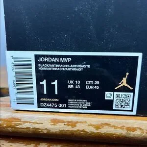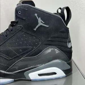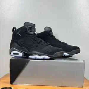 Experience the ultimate in style and comfort with these Jordan sneakers, featuring a sleek all-black nubuck upper and a visible Air unit in the heel. The signature perforated panels and lace lock system add a touch of sophistication to this monochromatic design. Perfect for those who appreciate a stealthy yet stylish look. Brand new . Worn once husband didn’t like them . Sneakers come with box