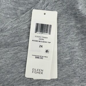 Eileen Fisher sz 2X Dark Pearl Gray Organic Cotton Elbow-Sleeve T-Shirt Dark New (337)