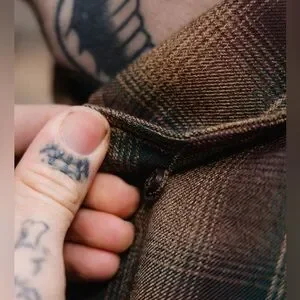 - Khaki and green Dixxon brand tag on the left chest pocket