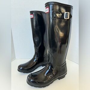 Hunter Original Tall Black Gloss Rubber Rain Boots size 6