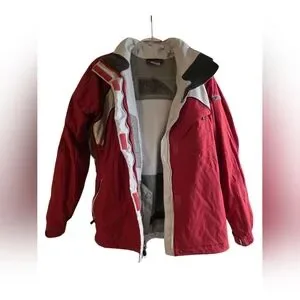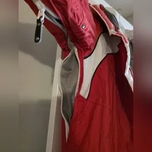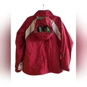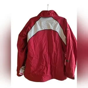 Stay warm and stylish with this vibrant red jacket. Perfect for outdoor adventures. We'll, loved, still looks great and keeps you warm. There is small damage to the internal ID pocket