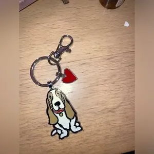 Marc Tetro Basset Hound Dog Keychain Bag Charm with Red Heart Charm - NWOT