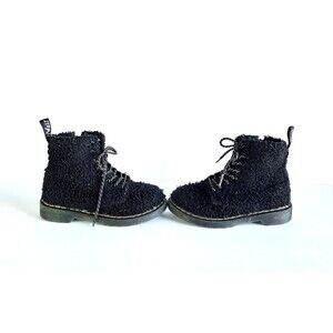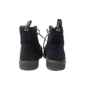 DR MARTENS Junior 1460 Pascal Tinsel Fur Lace Up Boots Black 12 29 Sparkly Girls
