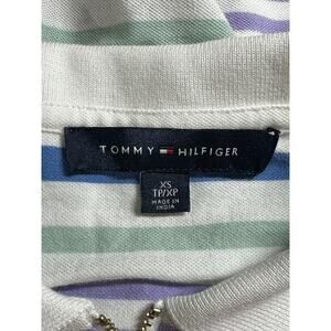 Tommy Hilfiger Top Womens XS White Stripe Polo 1/4 Zip Cotton Crest Logo Preppy