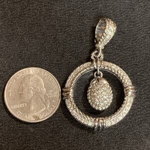 Judith Ripka Pendant/Enhancer Sterling Silver & CZ Round w/ Dangle