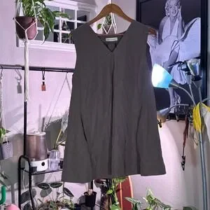 Elegant Essentials Sleeveless V Neck Tunic Dress A Line Taupe Women's