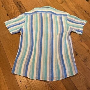Linen Made in Italy Mediterranean Blue Stripe S/S Men’s Shirt Size LARGE