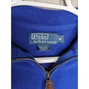 Polo Ralph Lauren Pullover Mens Medium BLUE 1/4 Zipper Sweater Shirt Pony Logo. Good used condition. Smoke free. Used clothing measurements may vary from new clothing. Please see the photos for lay flat measurements and condition details.